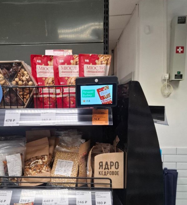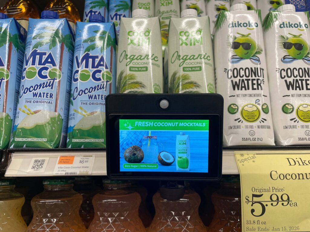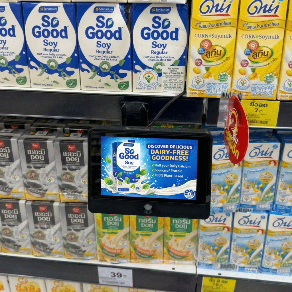 As shoppers approach, the screen lights up with bold visuals—bringing your product story to life and capturing attention right at the shelf.